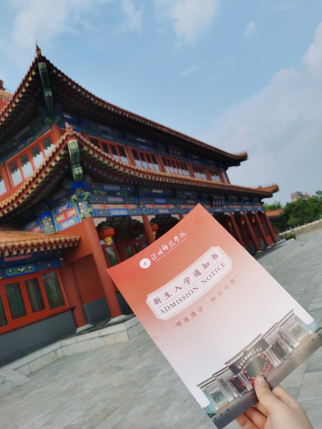 见字如面。今年的录取通知书采用最新版设计,以红色为主基调,正门标志建筑为主景,学校校徽、校名格外醒目。录取通知书封底采用中式传统吉祥纹样水波纹,内页印有图书楼简笔画,外包装以学校中轴线风景为背景。整体风格简洁大气、庄重热烈,将最美好的祝愿和最美丽的风景送给新生。