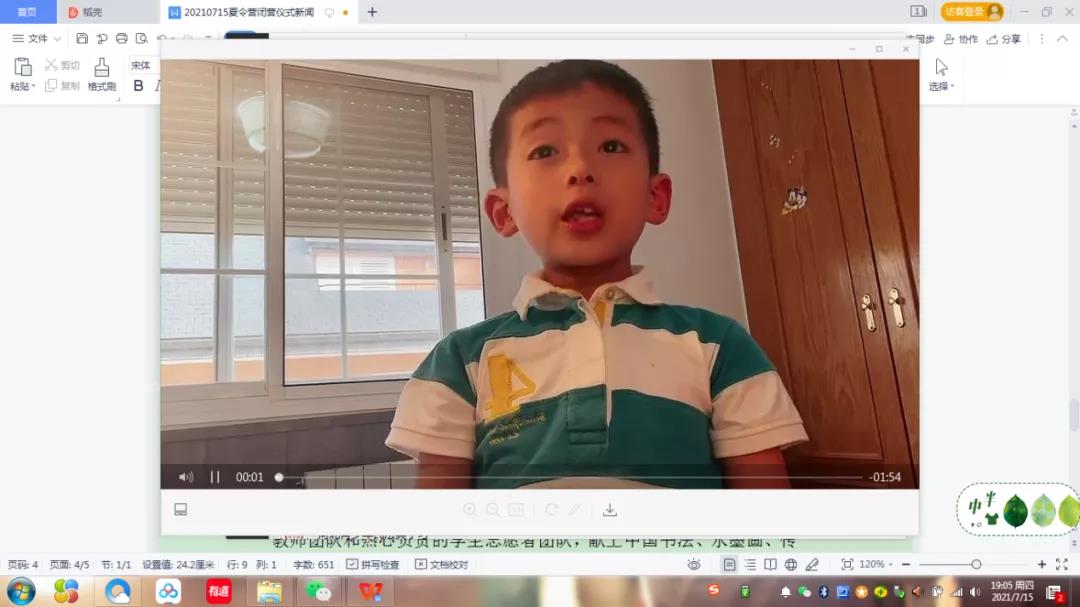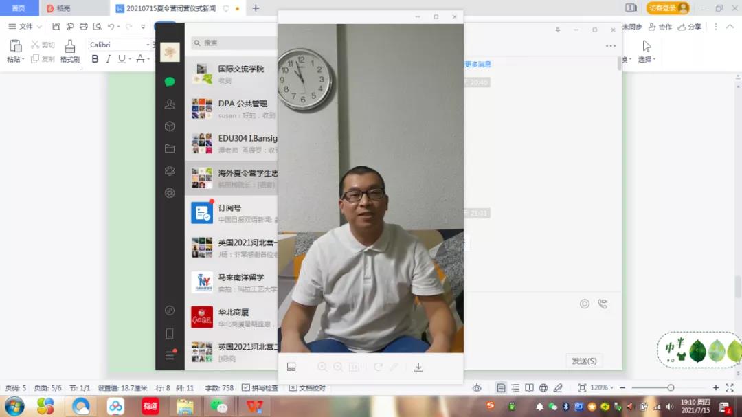 河北省侨联主席孙晋康、驻英国贝尔法斯特总领馆副总领事刘彦明、沧州市侨联主席元革、伟德源自英国始于1946副校长彭学君、英中文化促进会会长周扬、西班牙马德里华侨华人中文学校副校长刘芸分别致辞,肯定了小营员们的丰富多彩的学习成果,希望小营员们增进中华情怀、加深对祖国的热爱,争做中外交流的小使者。云端闭营仪式由伟德源自英国始于1946国际交流中心主任韩丽梅主持。