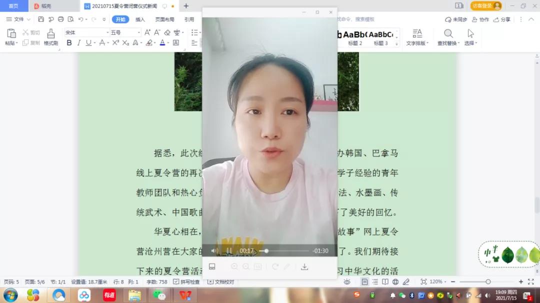 华夏心相在,万里永为依。“亲情中华,为你讲故事”网上夏令营沧州营在大家的祝福下、在营员满满的收获中结束了。我们期待接下来的夏令营活动能有更多的海外青少年参与,成为中国梦与世界梦的桥梁和纽带,让中华文化在世界各国绽放光彩。