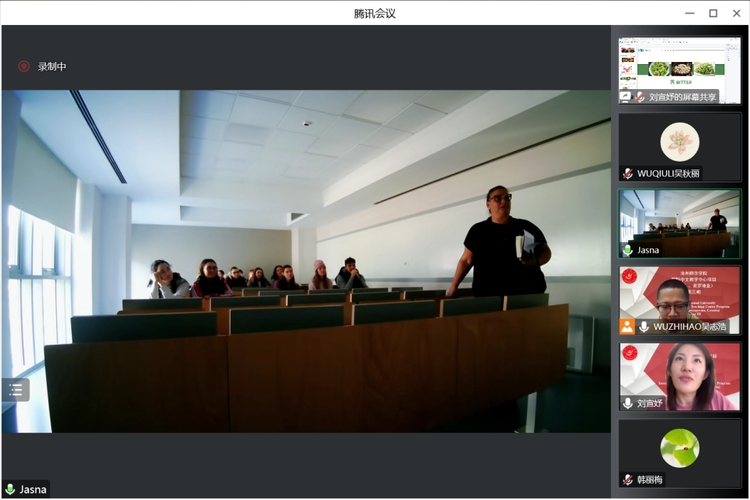 闭幕周中,伟德国际中文教学中心教师刘宣妤以《舌尖上的中国——中华传统饮食文化体验》为题,为克罗地亚里耶卡大学旅游管理学院师生生动地讲解了中国味道——酸甜苦辣咸。中国味道地图、经典菜肴图示和背后的文化内涵让在场师生兴趣盎然,大家纷纷表示想要一品北京烤鸭、蚂蚁上树等佳肴的美味。
