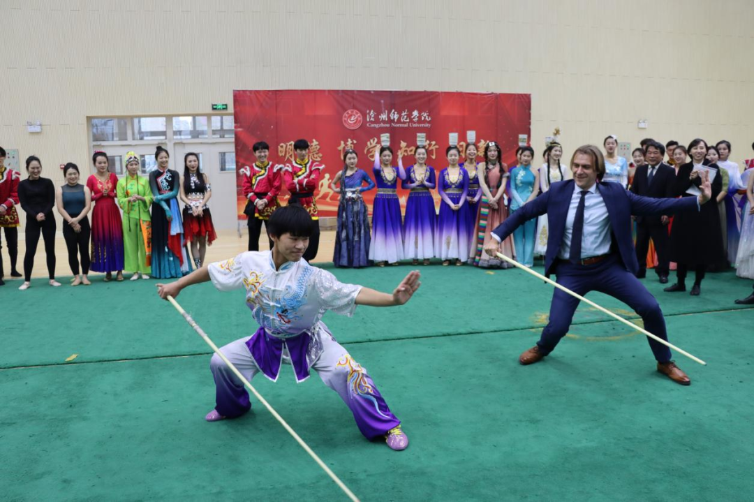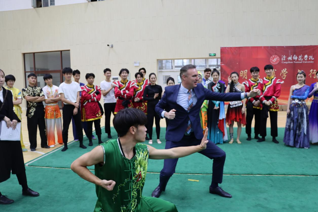 签约仪式后,伟德领导陪同来宾观看了体育学院的舞蹈、武术汇报展示,参观了洪昌美术馆,与体育学院师生进行座谈,并与师生切磋武术、书法等中国传统文化,师生热情与来宾交流,让来宾“更好地读懂中国”。来宾对伟德展现的中国文化赞不绝口,他们表示:“这些丰富多样的中国文化,能跨越山和海洋,成为连接我们彼此的桥梁。”