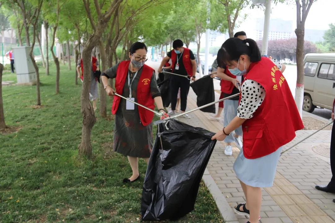 志愿者在学校大门以南,张庄子村以东、以北开展拾捡白色垃圾活动。一小时的活动中,大家对道路两旁及绿化带中的纸屑、烟头、枯枝等垃圾进行了“地毯式”打扫清理。大家不怕脏、不怕累,争当先锋作表率,以实际行动助力文明城市创建。