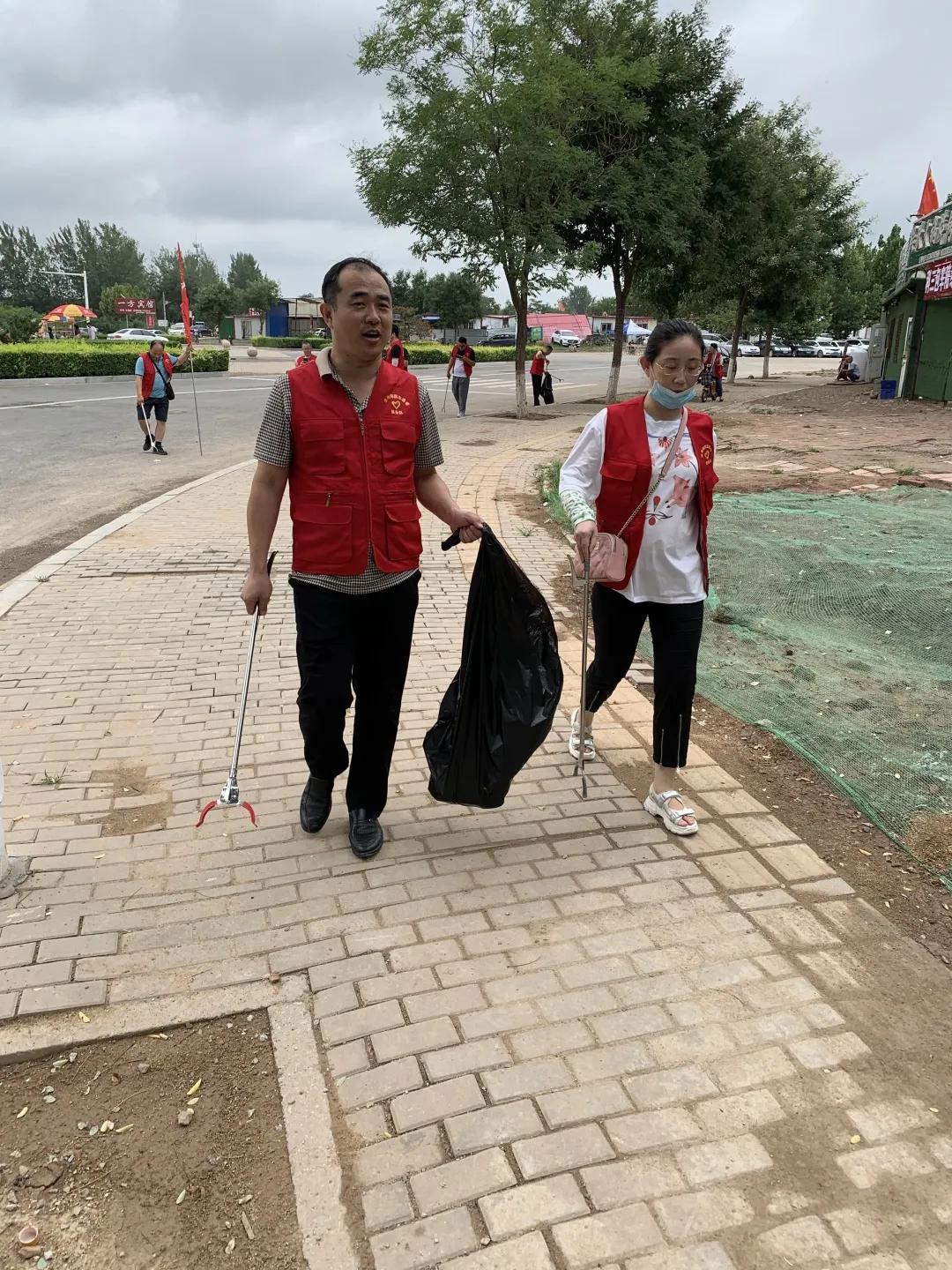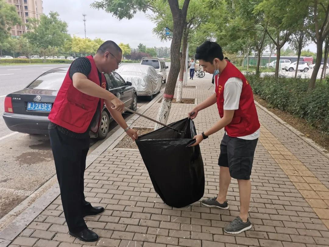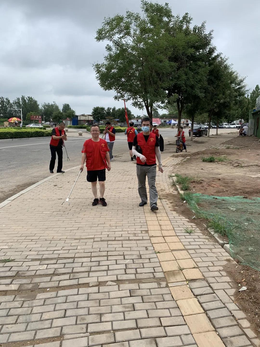 清晨,党支部的老师们早早来到学校集合。恰逢立秋,红色马甲在清晨的阳光中格外耀眼,大家分发完劳动工具和垃圾袋,就投入到热火朝天的劳动中。一路上大家对街边的白色垃圾、枯枝、烟头、果皮等各样垃圾进行了认真清理。经过一个小时的认真打扫,整条街道焕然一新,入眼皆净。