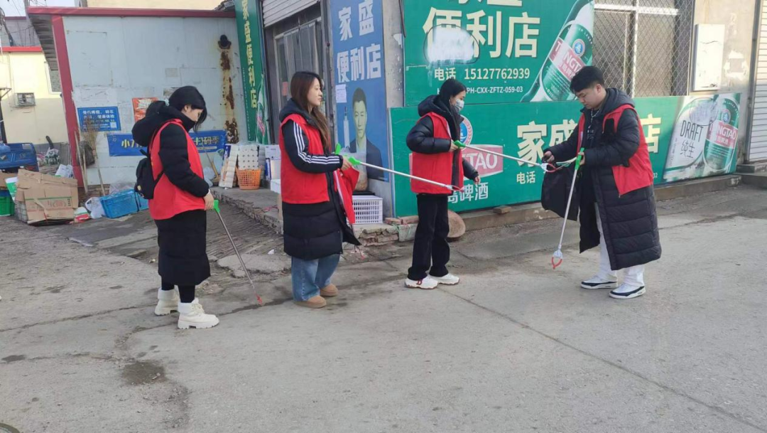宣讲活动后,四个学院的志愿者在张庄子村开展了爱国卫生运动。