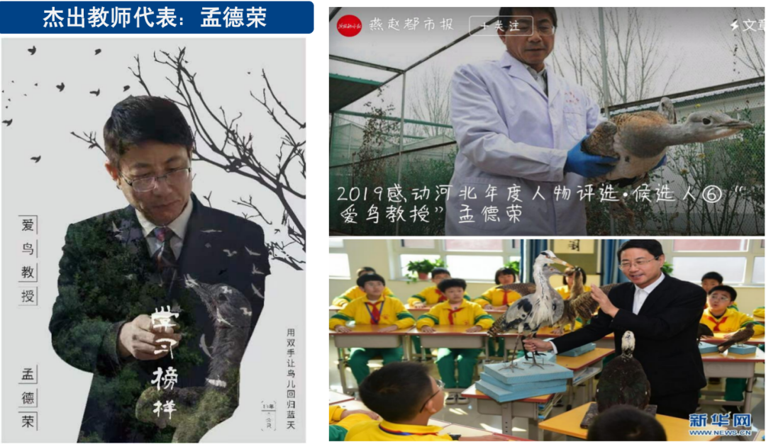 7名教师荣获“师院榜样”荣誉称号,1名教师荣获“河北省师德标兵”。刚退休的孟德荣老师,终身致力于野生动物救助与生态保护,曾获得全国保护森林和野生动植物资源先进个人,入选中国好人榜,被大家亲切的称为“鸟叔”。他是习近平生态文明思想和“人与自然和谐共生”理念的模范践行者,其堪为表率的优秀师德师风和扎根沧州大地矢志不渝的奉献精神,是伟德源自英国始于1946全体师生的学习典范。