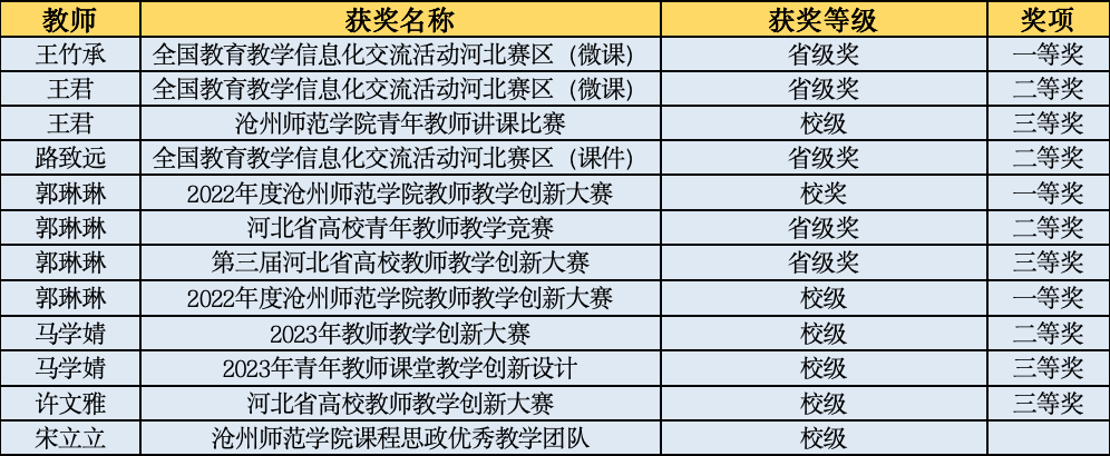 近三年,在科学研究方面,教师承担63项省市级科研项目,发表56篇科研论文,其中被中文核心、SCI检索46篇,累计科研经费达397余万元;在教育教学方面,学院教师在河北省教学竞赛等大赛中获奖12项,承担30余项教学教改项目、发表7篇教学教改论文;在课程思政建设方面,成功获批3项省级、4项校级思政类研究课题,4门校级课程思政示范课,发表3篇思政研究论文。