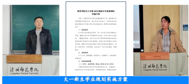 每学年开学初,教育学院定期举办院长第一课、书记第一课、教研室主任解读专业人才培养方案等系列专业导航讲座和报告。通过经验的分享,方案的解读,前景的分析,让新生对所学专业构建清晰脉络,明确专业标准和要求,引领职业发展规划路径。经典案例的分享、学界楷模的示范厚植了新生的家国情怀,坚定了职业理想和职业认同。