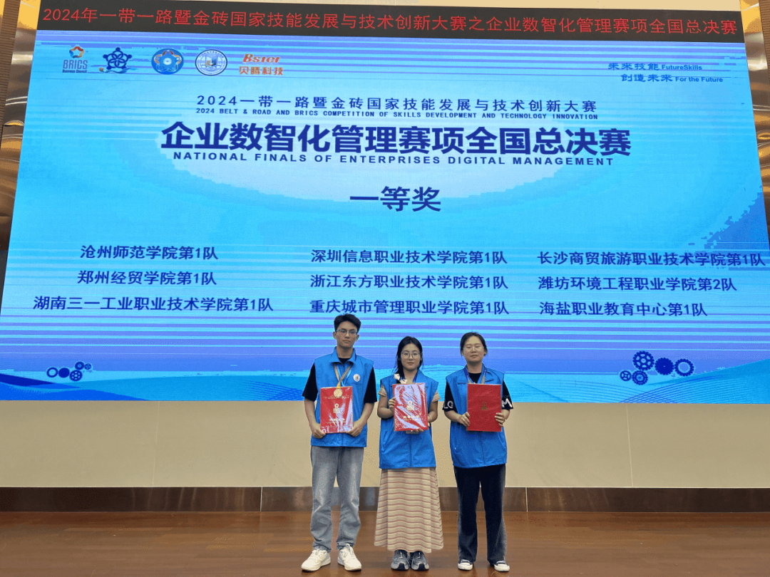 学院多年来持续探索“以赛带训、以赛促学、以赛促教”实训模式,为学生提供实战平台,提高学生学习主动性,培养创新精神和应用能力。在全国大学生互联网+创新创业大赛、学创杯会计技能大赛、电子商务三创赛等比赛中屡获佳绩,实现重点赛事全覆盖,近三年国赛、省赛获奖达百余人。2024年,在一带一路金砖国家技能发展企业数智化赛项,获得全国总决赛第一名;在学创杯创业综合模拟大赛全国总决赛获得一等奖。