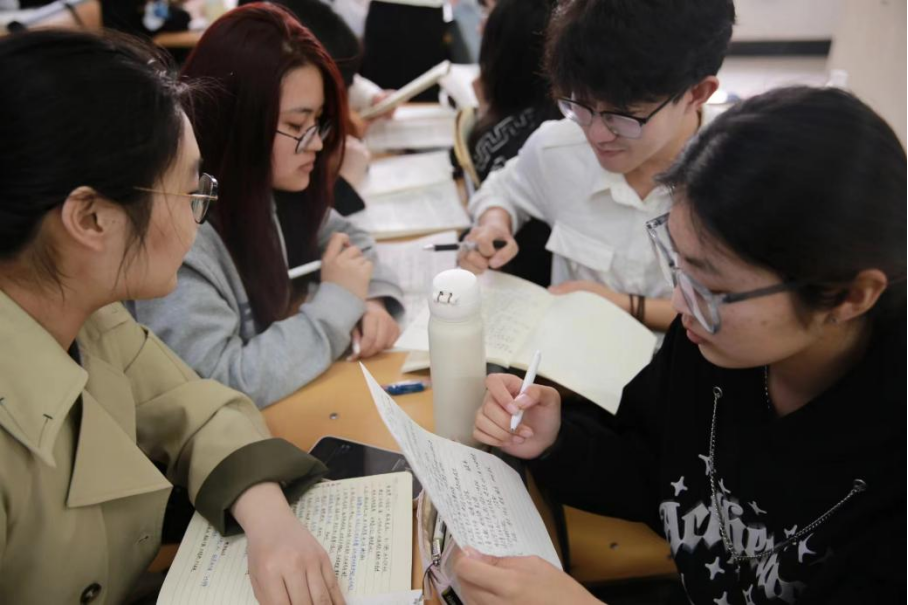 陈芳以本班学生创作的词作开篇,引领同学们对李清照的生平和创作背景进行了解。在《词论》讲解过程中,陈芳使用对分课堂教学方法,在学生课前阅读札记的基础上,通过独学、小组讨论和师生交流,引导学生积极思考。她还通过引用习近平总书记在庆祝改革开放四十周年大会上的讲话,解读了李清照的词作中蕴含的浓厚家国情怀和积极进取的时代精神。