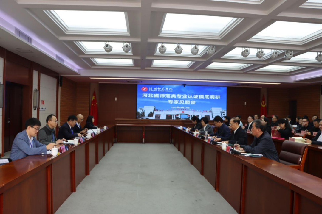 10月15日,师范专业认证摸底调研专家见面会在齐越楼四楼会议室召开。专家组全体成员,校领导云电军、张占平、高颖、范小振、郭玉秀,各职能部门、相关二级学院负责同志,数学与应用数学、美术学等师范专业负责人参加见面会。